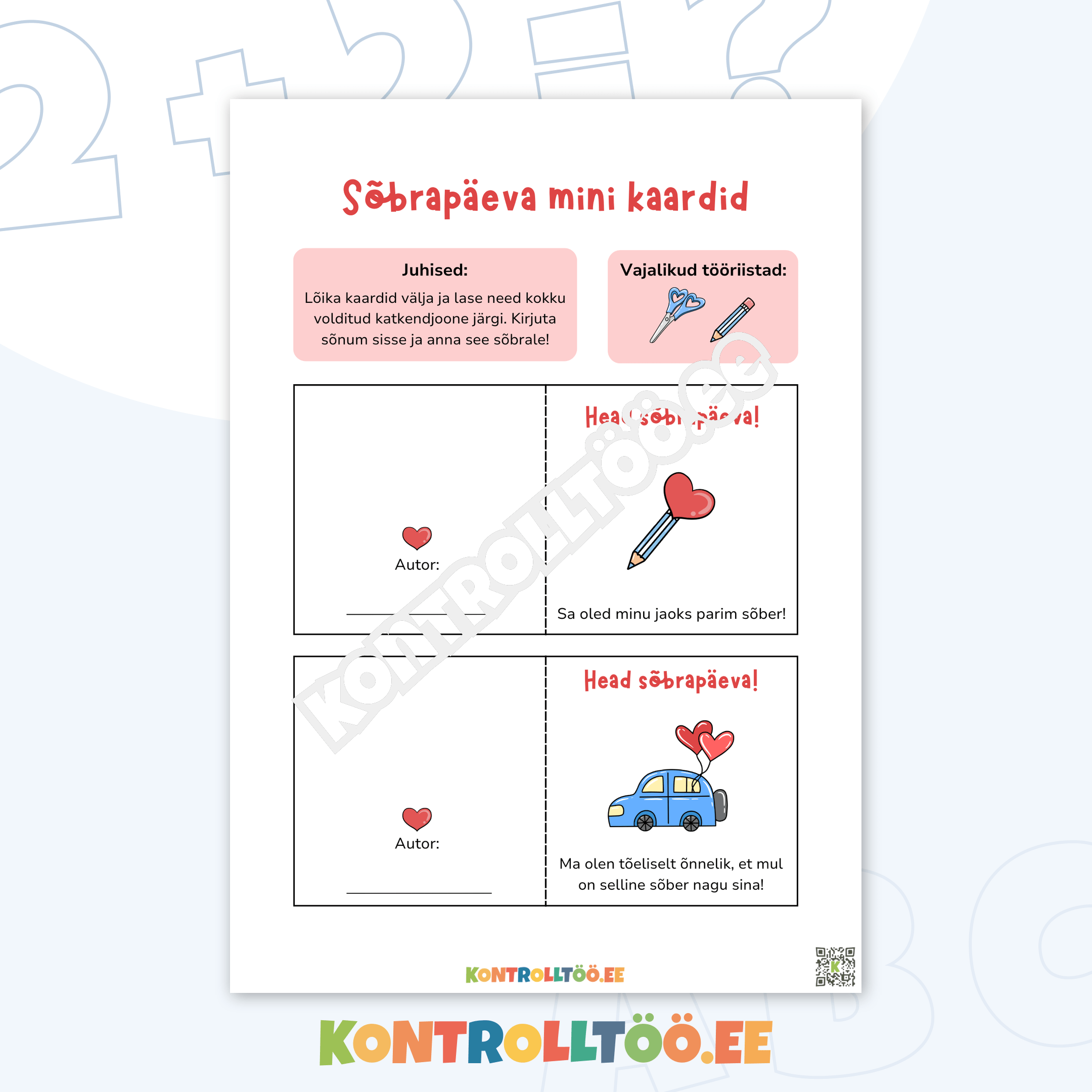 ✔️ Sõbrapäeva matemaatika – loendamine, liitmine, lahutamine ja jagamine 🔢