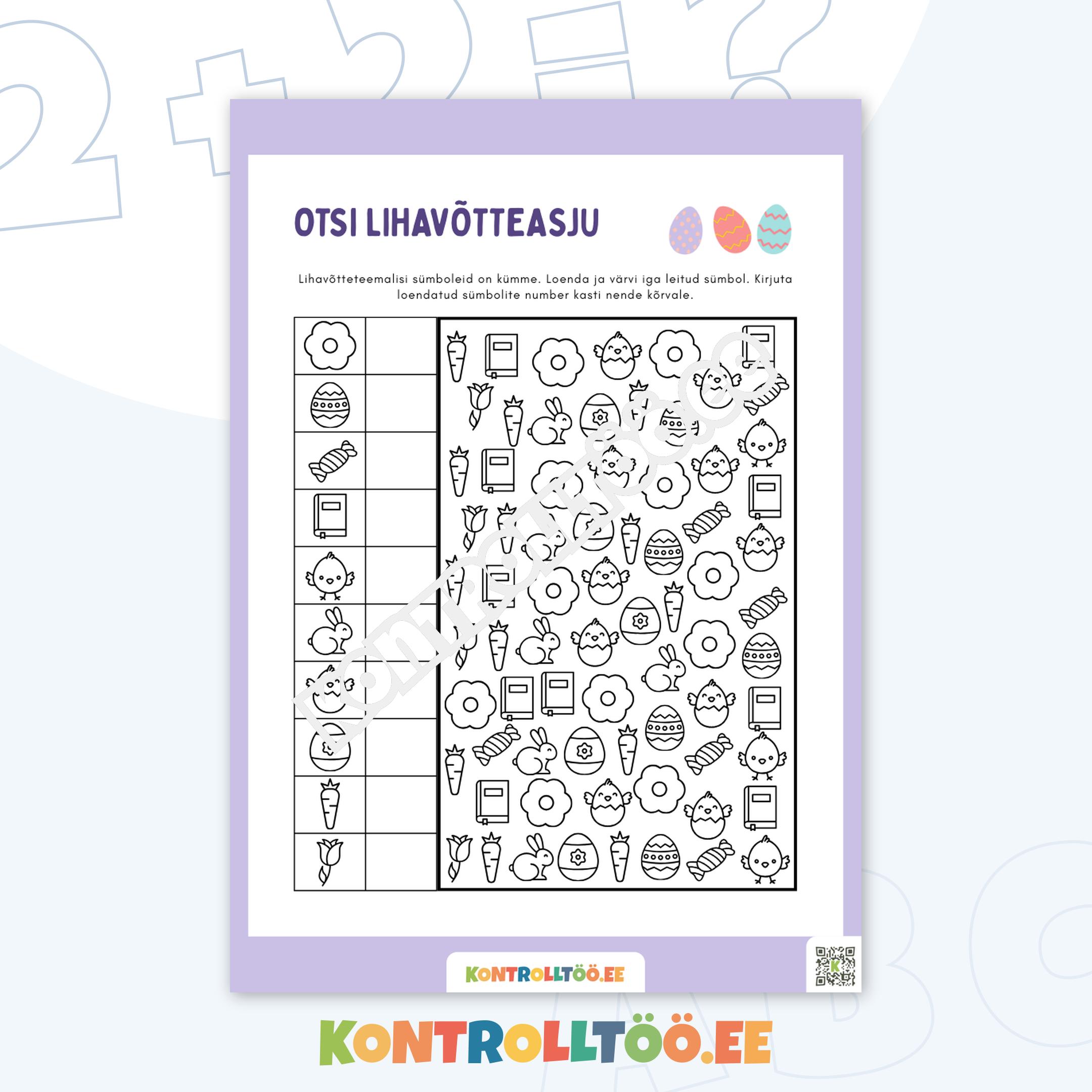 Tööleht – Lihavõtted: Otsi ja loenda peidetud sümbolid